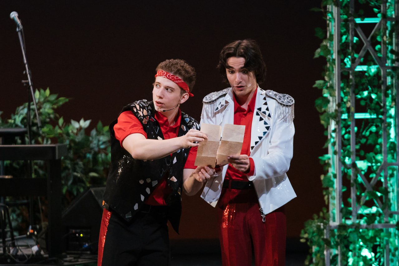 При этом Олег Загуменнов и его воспитанники, вероятно, хотели сказать больше. Дело в том, что герои шекспировской комедии были одеты в яркие брюки клеш и исполняли между диалогами песни группы ABBA.