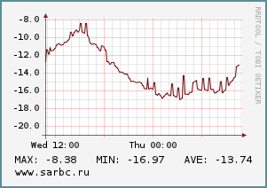 На данный момент в Саратове -13 град., давление 760 мм рт. ст., влажность 23%, ветер северо-западный 1 м/с.