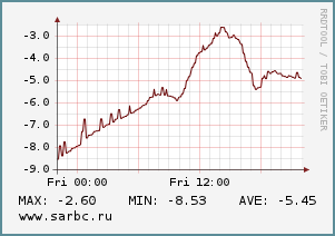 На данный момент термометр показывает 7 град. мороза, днем столбик поднимется до -4. Вечером и ночью температура вновь опустится до -9.