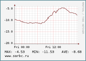 Дует южный ветер 6-7 м/с с порывами до 14 м/с. Атмосферное давление понизится с 751 до 745 мм.рт.ст.