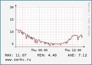 Дует юго-восточный ветер 4-5 м/с, к вечеру он усилится до 6-7 м/с, возможны порывы до 12-13 м/с. Атмосферное давление понизится в течение дня с 767 до 755 мм рт.ст.