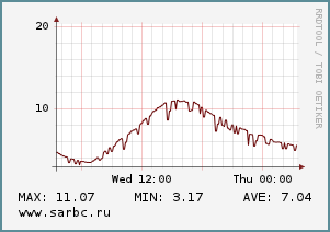 Температура воздуха на данный момент составляет 11 град., днём поднимется не выше 14-ти. К ночи небо прояснится, но станет холоднее. Столбик термометра к утру 5 сентября понизится до 7 град.
