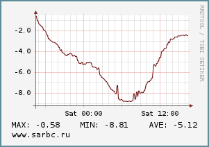 На данный момент в городе около нуля, днем воздух прогреется до 2 град.