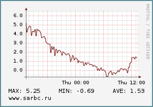 На данный момент в городе около нуля, днем потеплеет максимум до 1 град.