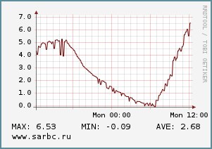 На данный момент в городе -9 град., днем до -5. Дует северо-восточный ветер 7 м/с.