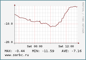 Дует западный ветер 2 м/с, который к вечеру усилится до 5 м/с с порывами 12-13 м/с. Атмосферное давление повысится с 739 до 748 мм рт.ст.