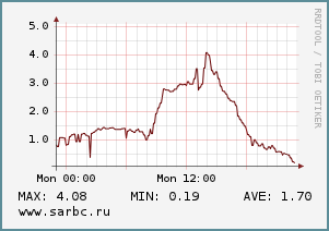 Дует юго-западный ветер 3 м/c с порывами до 9 м/с.