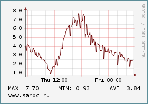 Дует северный ветер скоростью 3-4 м/с. Атмосферное давление снижается с 756 до 752 мм рт.ст.