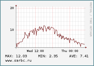 Дует северо-западный ветер скоростью 8-10 м/с. Атмосферное давление повышается с 749 до 755 мм рт.ст.