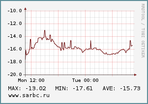На данный момент в городе 1 градус выше нуля, днём - до +4.