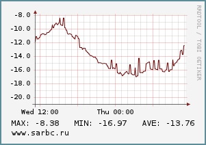 На данный момент в городе 11 градусов ниже нуля, днём - до минус 7. Прогнозируют переменную облачность без осадков.