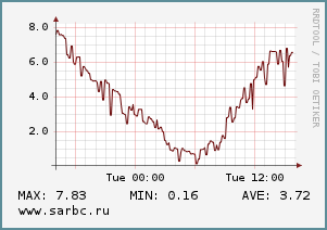 Дует ветер западной четверти скоростью 6-8 м/с. Атмосферное давление растёт с 744 до 749 мм рт.ст.