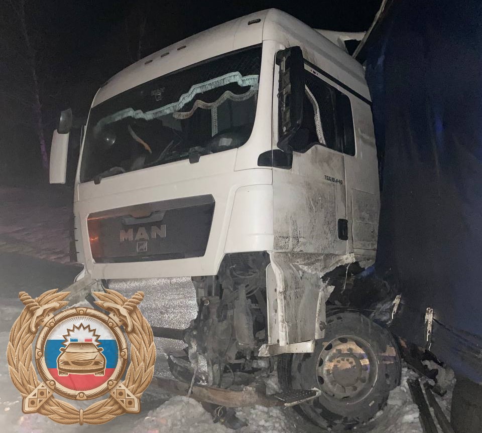 В 22 часа на 612-м км возле села Большая Ольшанка фура МАN с полуприцепом, которой управлял 38-летний мужчина, наехала на металлическое барьерное ограждение и съехала в правый кювет.