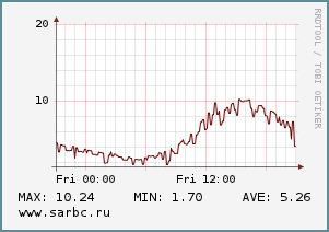 Дует южный ветер скоростью 3-5 м/с. Атмосферное давление снижается с 759 до 754 мм рт.ст.