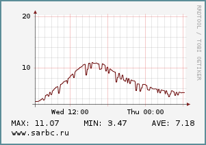 Дует южный, юго-восточный ветер скоростью 3-4 м/с. Атмосферное давление снижается с 769 до 764 мм рт.ст.