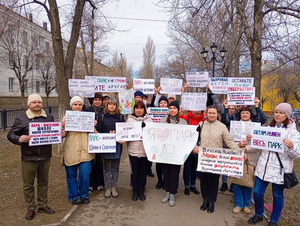В воскресенье, 30 марта, инициативная группа горожан и представители общественного движения "Родительский надзор" провели санкционированный митинг в поддержку требований сохранения парка "Территория детства" в фактических границах и переноса места строительства школы. Собравшиеся держали в руках плакаты с лозунгами "Наши дети достойны и парка, и школы! Нет застройке парка!", "Признать парк "Территория детства" объектом культурного наследия!", "Здоровье бесценно! Школе - другое место!".