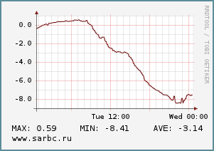 На данный момент в городе 1 градус выше нуля, днём не более девяти.