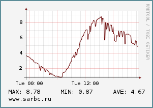 Весь день будет дуть западный ветер (4 м/с). Ночью его скорость уменьшится до 2 м/с и направление сменится на северо-западное. Атмосферное давление будет снижаться с 763 до 761 мм рт.ст.