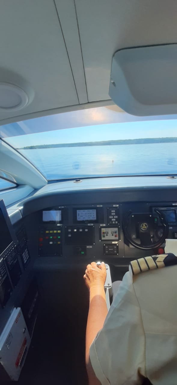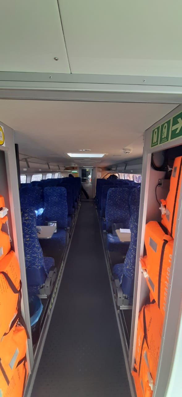 В начале поездки министр транспорта области Николай Сергеев рассказал о технических характеристиках "Валдая-45Р": длина - более 21 метра, водоизмещение - свыше 21 тонны, скорость на "тихой" воде достигает 65 км, запас хода - 400 км, вместимость - 45 человек.