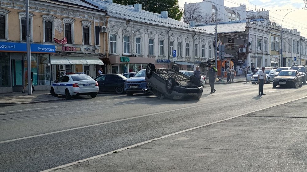 В центре Саратова сегодня на проезжей части опрокинулся автомобиль. Об этом сообщает городская Госавтоинспекция.
