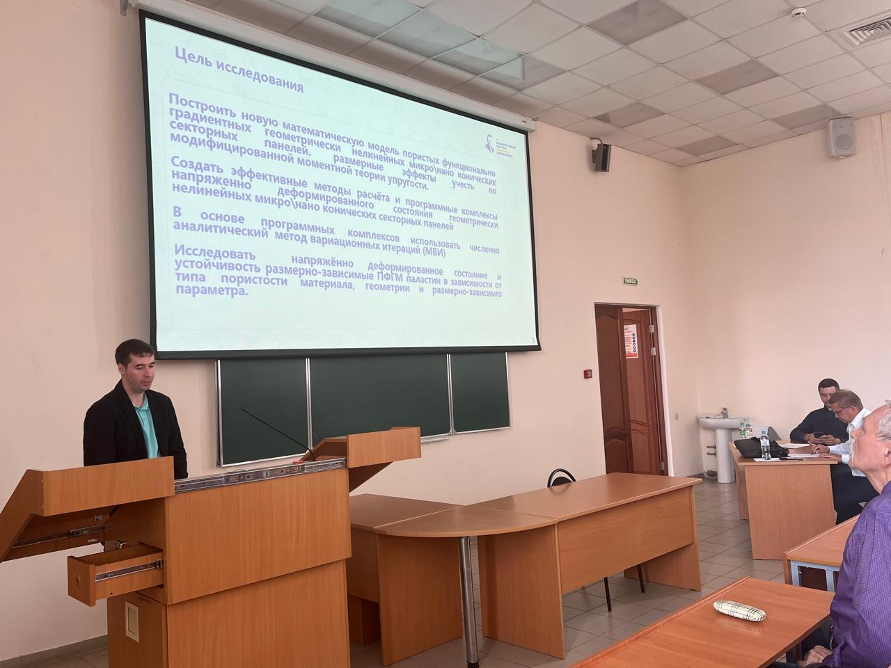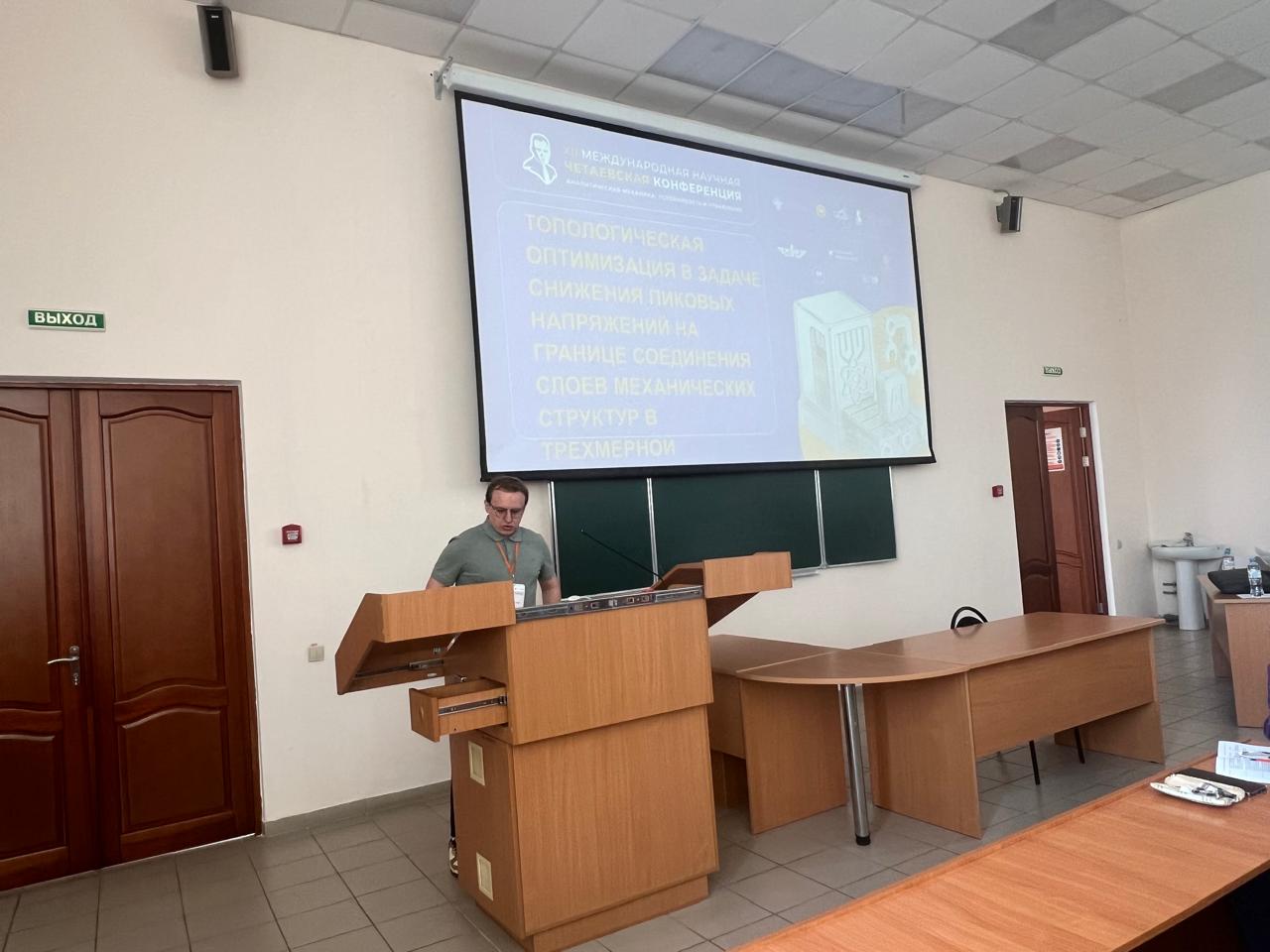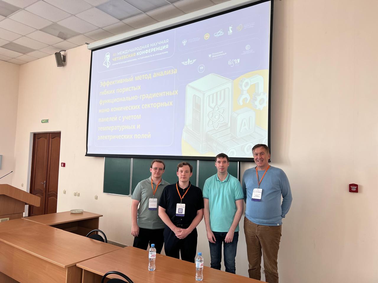 Крое него СГТУ в Казани представляли сотрудники кафедры "Математика и моделирование" физико-технического института - аспиранты Леонид Калуцкий (доклад "Эффективный метод анализа гибких пористых функционально-градиентных нанопанелей с учётом температурных и электрических полей"), Павел Дунченкин ("Топологическая оптимизация в задаче снижения пиковых напряжений на границе соединения слоев механических структур в трёхмерной постановке"), Антон Максеев ("Упругопластический изгиб пластинок с центральным отверстием в трёхмерной постановке") и доцент Светлана Мицкевич.