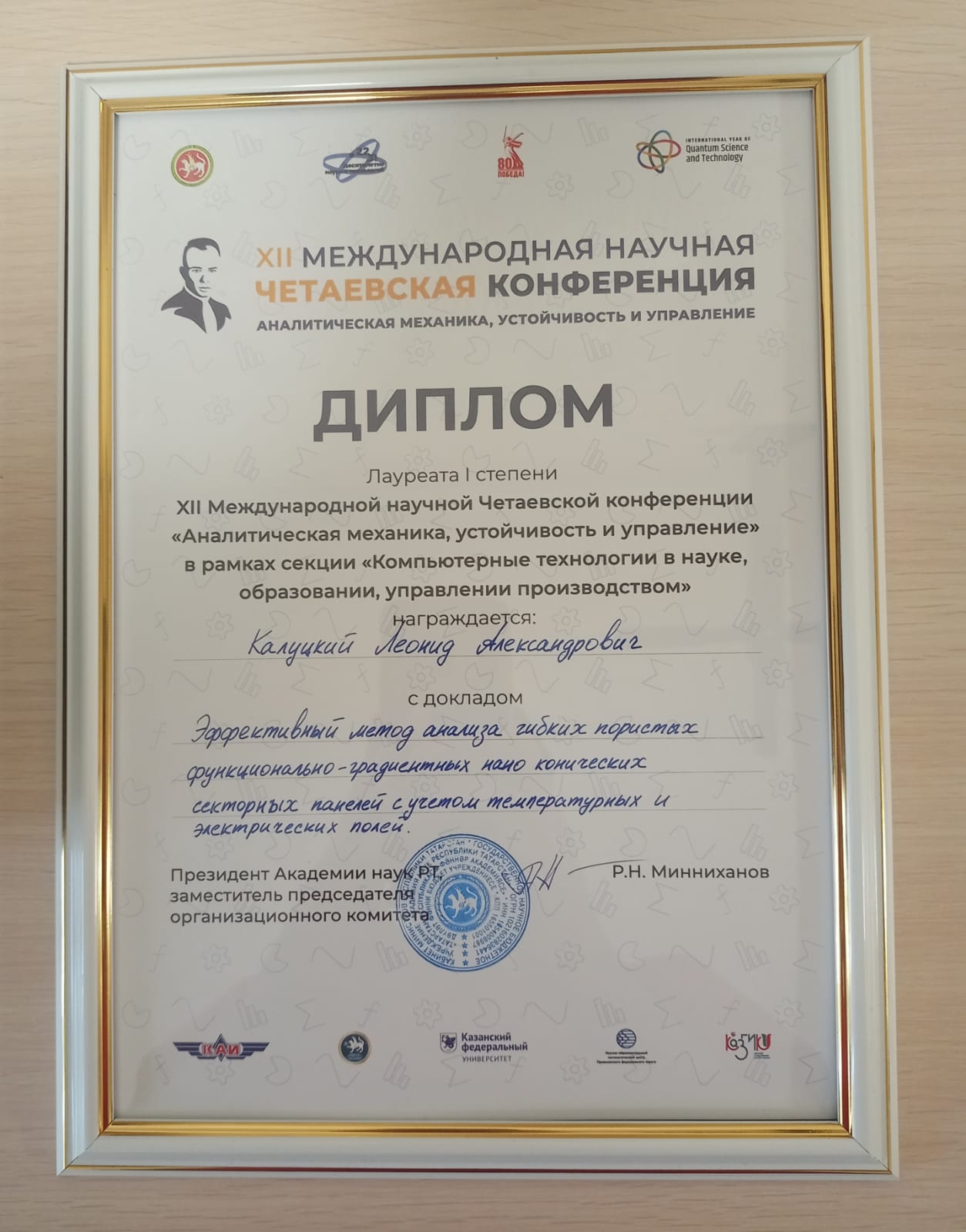 По итогам конференции Леонид Калуцкий был удостоен диплома лауреата Первой степени.