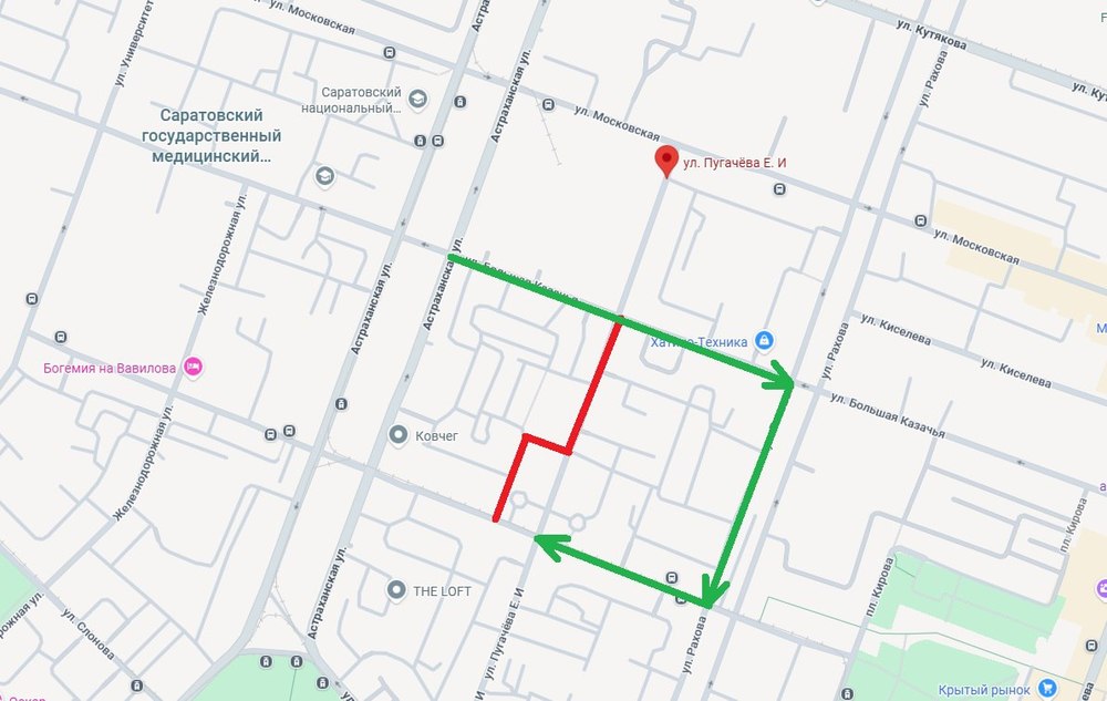 В связи с ремонтом подземных коммуникаций сегодня, 12 августа, перекрыто движение транспорта на Пугачёва - между Большой Казачьей и Вавилова. Объезд предлагается по Б. Казачьей, Рахова и Вавилова.