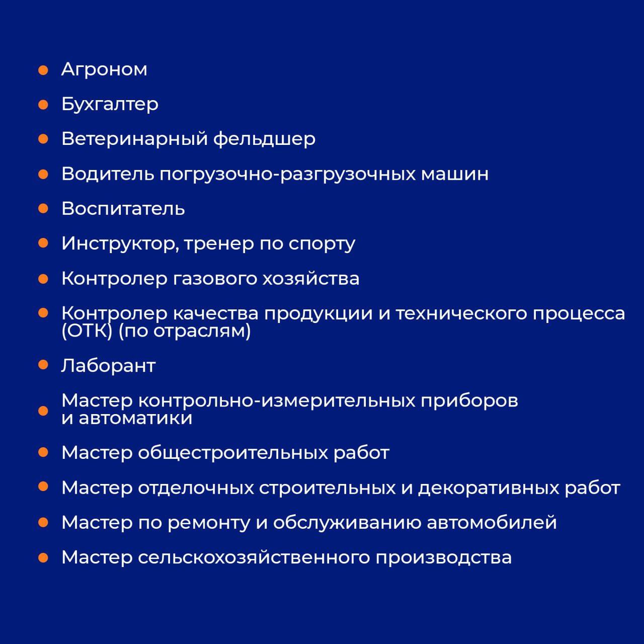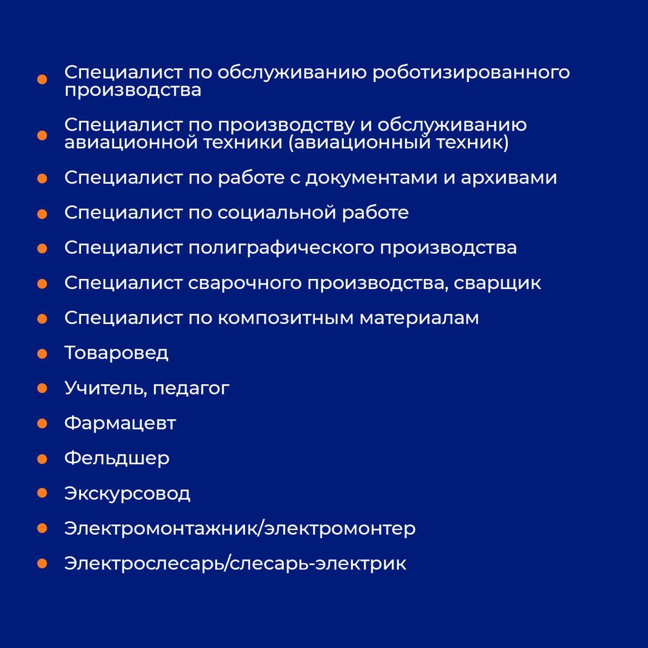 В перечень вошли 55 профессий, по которым определяются приоритеты подготовки кадров по современным стандартам для экономики и соцсферы в учреждениях СПО. Он формируется на основании анализа ситуации на рынке труда на текущий момент и с учётом прогнозов. Реестр позволит саратовским школьникам выбирать те направления подготовки, которые будут востребованы на рынке труда, и оставаться конкурентоспособными.