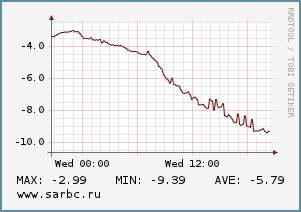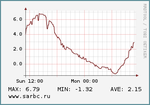 Сейчас дует северо-западный ветер со скоростью 6 м/c. К обеду направление изменится на северное, а ночью ветер вновь подует с северо-запада и станет чуть слабее (4 м/c). Атмосферное давление - 754-755 мм рт. ст., влажность 53-71%.