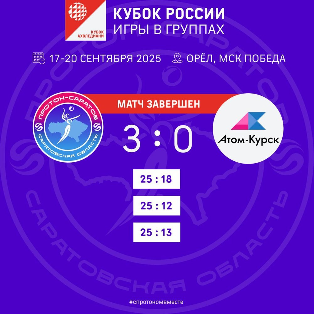 Саратовский волейбольный клуб "Протон" выиграл все 4 матча предварительного этапа Кубка России в Орле.