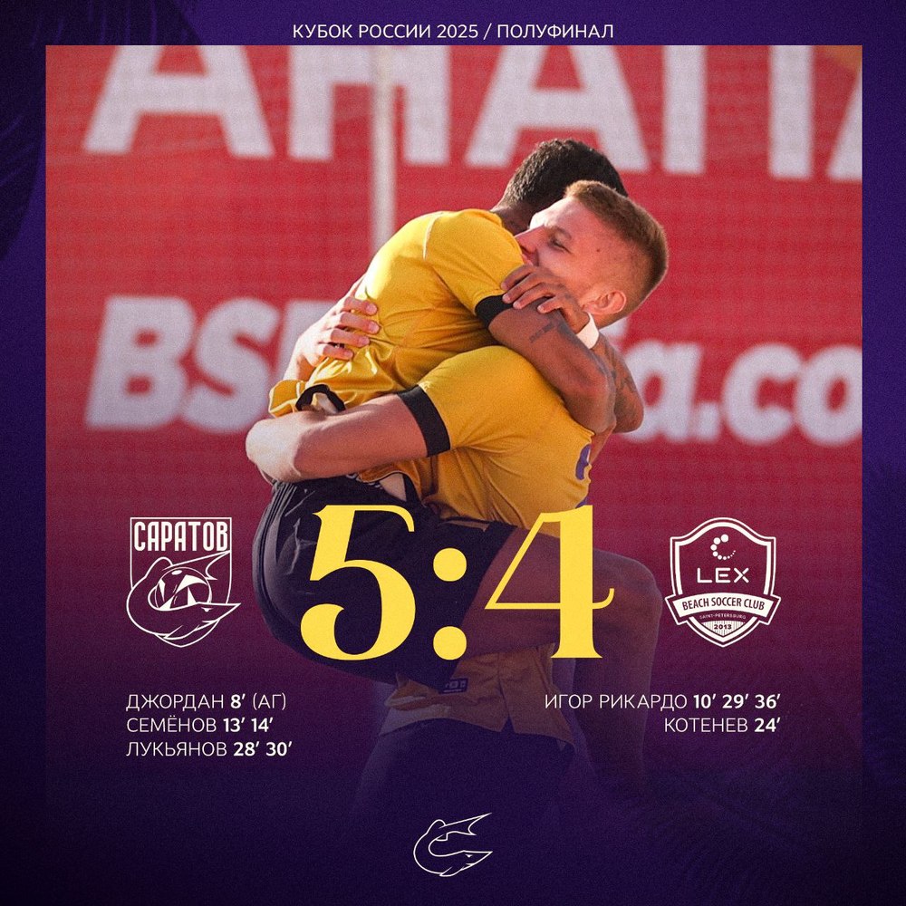 "Саратов" победил "Лекс" из Санкт-Петербурга - 5:4. У саратовцев дублями отметились Лукьянов и Семенов, один мяч на счету Джордана.