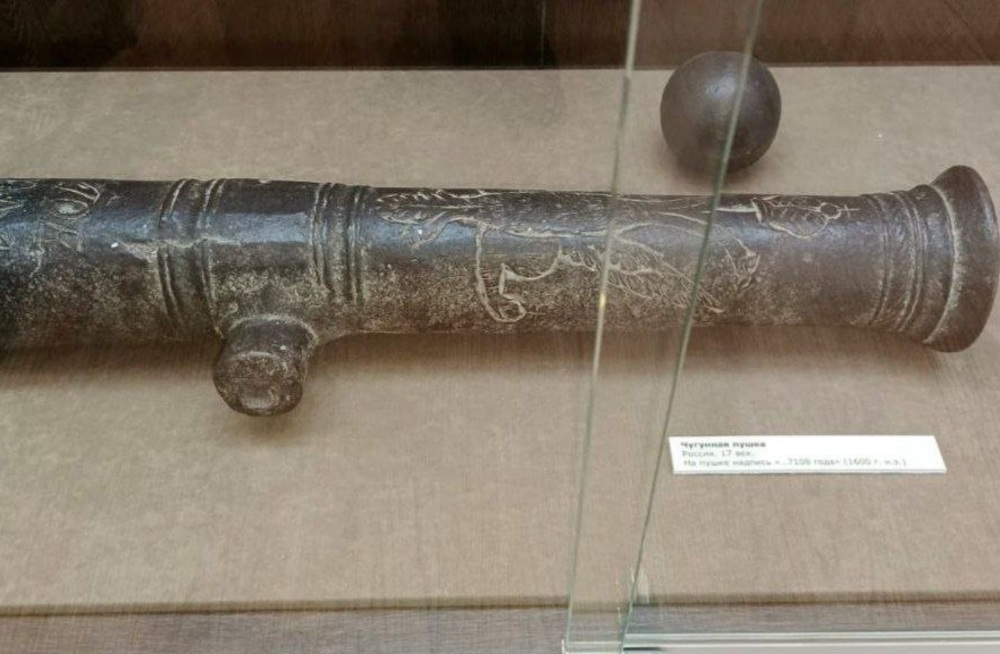 Однако, как выяснилось, одна пушка оставалась в городе. Ранее она хранилась в местном музее имени Панфилова и была подписана скромно: "Чугунная пушка XVII века".