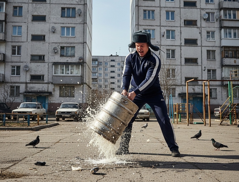 Звуковая волна была настолько мощной, что одновременно сработала сигнализация у большинства припаркованных поблизости автомобилей. Как выяснилось позже, источником шума стал неизвестный мужчина, который с размаху ударил о землю пивную кегу.