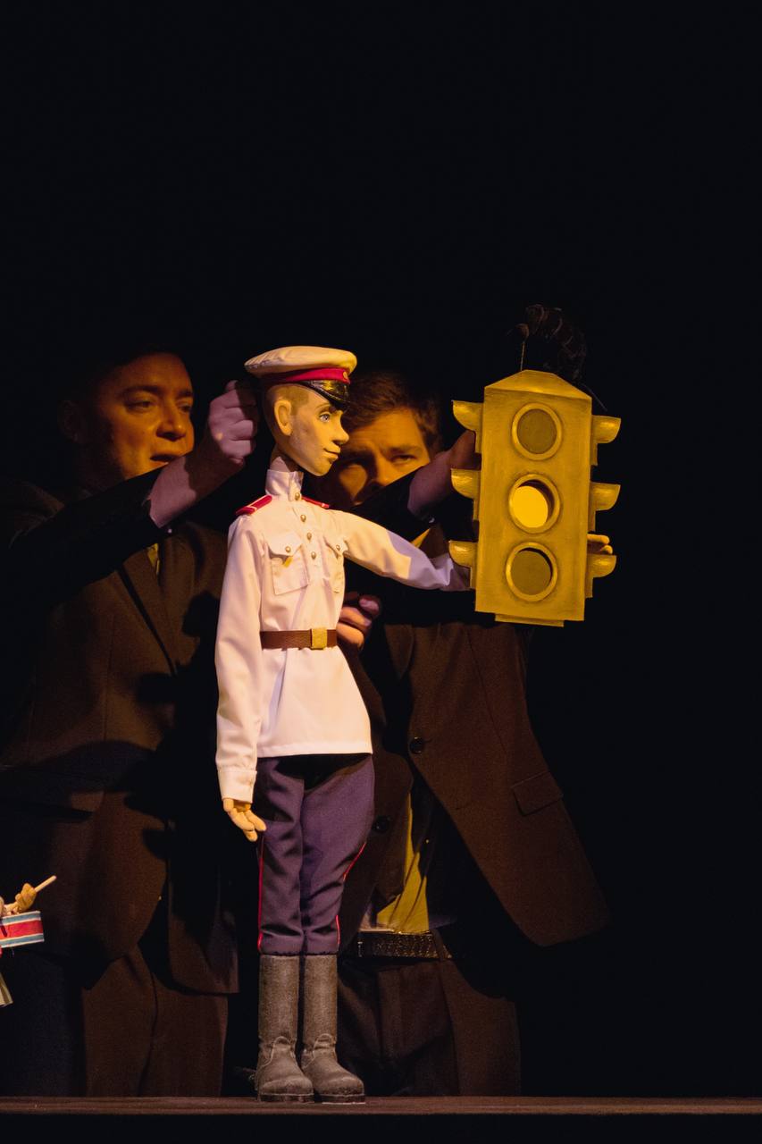 "Для спектакля художники, механики и бутафоры разработали и создали особую систему кукол, которую назвали "пальчиковые". Куклы большинства героев достаточно миниатюрные: они одеваются на руку, а указательный и средний палец артистов-кукловодов становятся ножками кукол. Такой выбор системы управления был выбран еще и для того, чтобы подчеркнуть контраст между ростом Степана Степанова и остальными персонажами: кукла Дяди Стёпы – это большая планшетная кукла, заметно выделяющаяся своим масштабом на фоне остальных. Все как и в произведении Михалкова – к слову, сам автор так же появляется в спектакле и выступает своеобразным рассказчиком", - сообщают в пресс-службе театра.