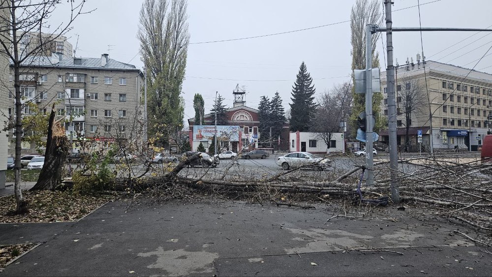Это произошло на улице Серова напротив ВГТРК "Саратов". Упавшее дерево полностью перегородило тротуар и частично проезжую часть.