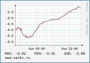 В понедельник ночью ожидается 3-6 и около 5 град., днём 5-10 и около 7. Затем наступит похолодание, температурный фон вернётся в климатическую норму.