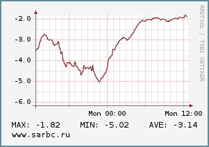 Сейчас в городе 0 градусов. К обеду температура воздуха понизится до -3, вечером станет еще на 3 градуса прохладнее, а вечером похолодает до -10 градусов.