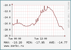 Сейчас в городе 14 градусов ниже нуля. К обеду температура воздуха поднимется до - 9, вечером - еще на один градус, а ночью термометр покажет 7 градусов мороза.