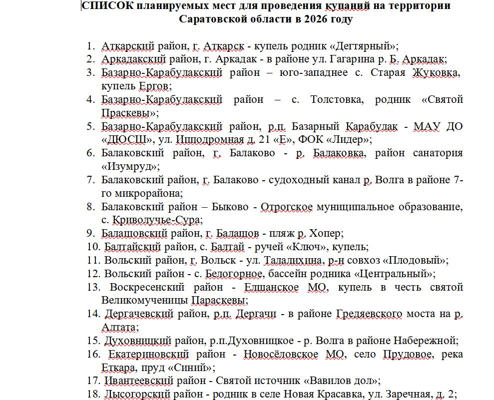 В Саратовской области стали известны официально разрешённые места для крещенских купаний.