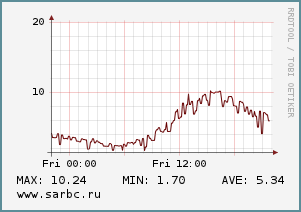 Сегодня будет дуть слабый (2-3 м/с) преимущественно северо-западный ветер. Влажность воздуха будет расти с 54% до 79%, атмосферное давление - падать с 770 до 765 мм рт. ст.
