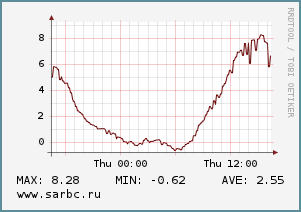 Будет дуть юго-восточный ветер (3-4 м/с). К концу дня скорость повысится до 5 м/с. Влажность воздуха - 91-93%, атмосферное давление с 753 снизится до 748 мм рт. ст.