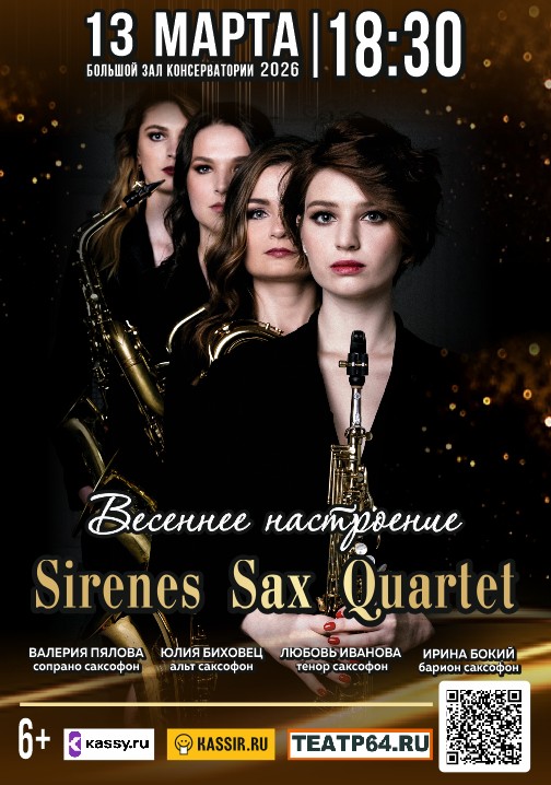 В консерватории 13 марта в рамках Первого всероссийского фестиваля "Звёзды саксофона" выступит единственный в России женский Sirernes Saxophone Quartet с программой "В джазе только девушки. Весеннее настроение". В программе - джазовые стандарты, музыка к кинофильмам, популярные мелодии и песни.