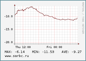 Сейчас в городе 12 градусов мороза. Днём столбик термометра поднимется до -7, вечером будет 8, а ночью 11 градусов ниже нуля.