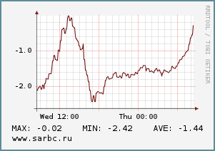 Сейчас в городе один градус мороза. Днём термометр покажет +3, к вечеру воздух начнет охлаждаться и к ночи достигнет нулевых значений.
