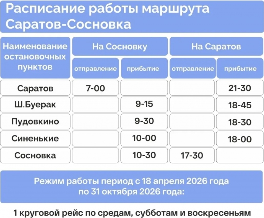 Перевозки традиционно будут производиться по пригородным маршрутам - до Шумейки, Сосновки, а также между Хвалынском и Духовницким. Дата завершения сезона - 31 октября.