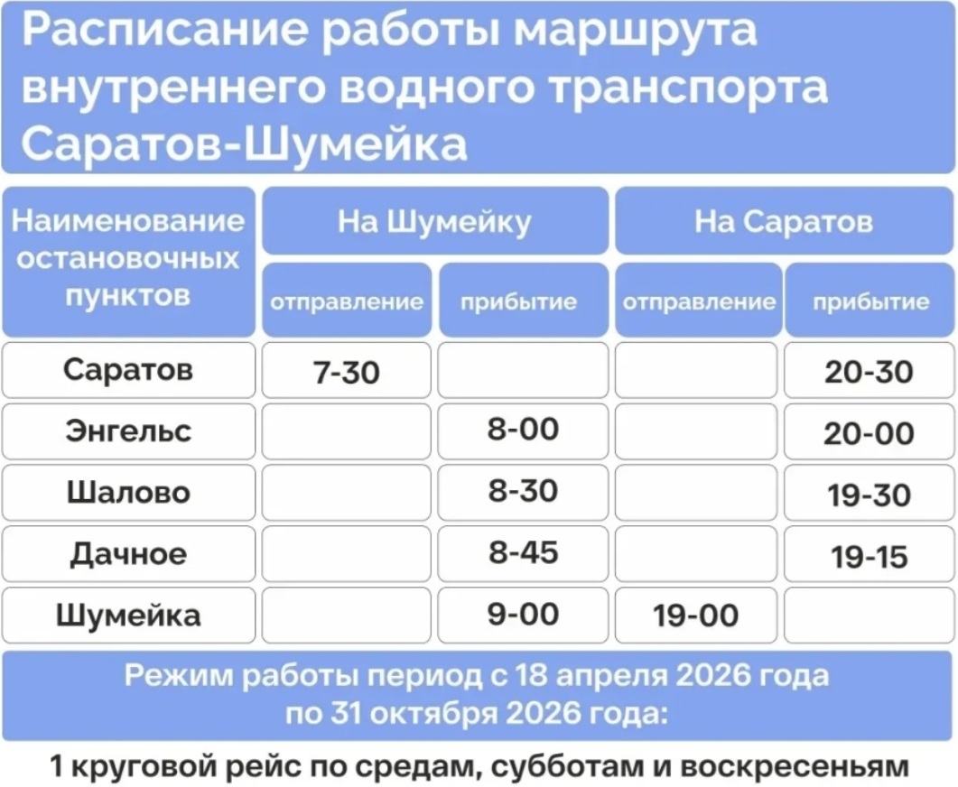 О работе скоростных судов ведомство пока ничего не рассказывает. Напомним, в прошлом году на направление до Хвалынска был заказан теплоход на подводных крыльях "Метеор". До этого в Балаково с остановками в Марксе и Вольске по Волге начали ходить два "Валдая".
