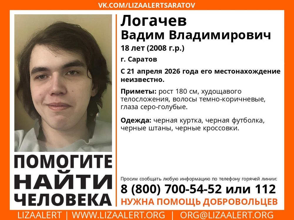 В Саратове разыскивается 18-летний Вадим Логачев. Об этом сообщает региональное отделение добровольческого поисково-спасательного отряда "Лиза Аллерт".