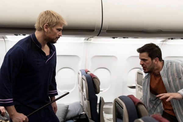 Сюжет незамысловатый, но главное в таких историях, конечно, исполнение. Оно здесь в стиле "Джон Уик в самолёте". Вместо меланхоличного Киану Ривза — выкрашенный в блондина Джош Хартнетт, который больше всего напоминает Бреда Питта в "Быстрее пули". (Собственно, эти два фильма похожи).