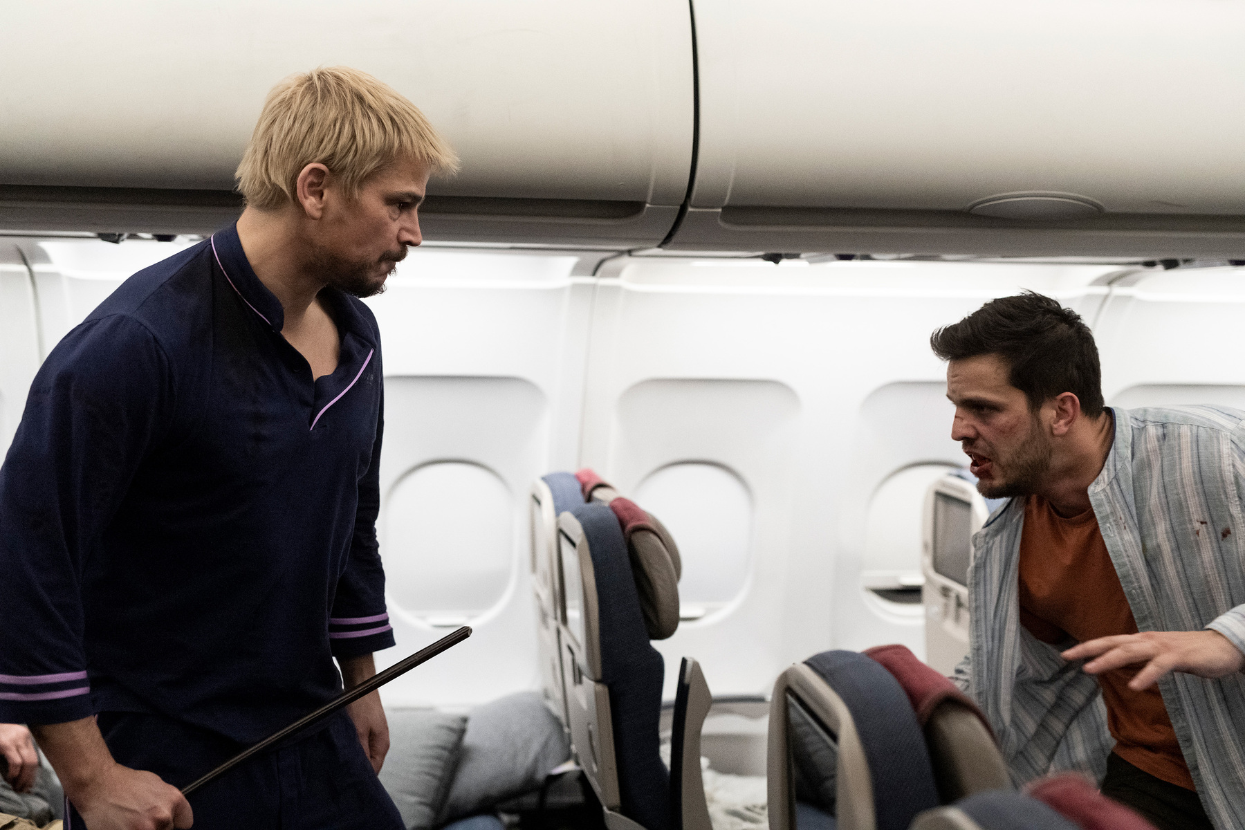 Самолет, к счастью, не формата "летающий автобус", а большой, с несколькими этажами и просторным первым классом. Так что персонажам есть, где подраться. А дерутся там примерно все — рейс практически полностью выкупили киллеры. Поэтому любителям развлекательного мордобоя есть на что посмотреть — это вполне приличный образец боевика в замкнутом пространстве. Герою и тем, кто на его стороне, приходится использовать все подручные средства, которые ожидаешь увидеть в самолете (ремни безопасности, разный инвентарь), и те, которые не совсем ожидаешь (бензопилу, например). Дыру в боку воздушного судна на большой высоте вам проспойлерит сам фильм в начале, так что да, без этого клише тоже не обошлось. Местами насилие такое преувеличенное, что кажется, что вы смотрите 15754-ю серию "Крутого пике" из "Каламбура". Ну, если бы он был кровавеньким экшном. Если вы такое не любите, "Рейс навылет" лучше пропустить — больше тут смотреть особенно не на что.