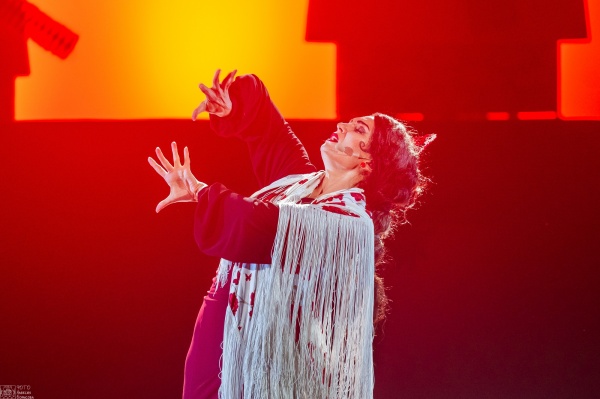 Мужскую компанию на сцене разбавила Дульсинея, она же Светлана Усова. Сейчас она не часто выходит на сцену, а в основном работает как художник в постановках своего мужа (великолепный визуал в "Илье Муромце" - это ее рук дело). И все же таинственная роковая возлюбленная получилась из Усовой на зависть. Именно ради такой девушки хочется совершать подвиги - статная, красивая, сверкающая глазами, манящая алыми губами. А как она танцует фламенко! Юбка вздымается вверх, стройные ноги начинают выполнять сложные чечёточные па, и публика замирает от восторга. Отдельная благодарность хореографу Виктории Харитоновой за номера с платком. Дульсинея феерично управляется с ним, то выставляя вперед, слово матадор на корриде, то прячась в него, ища убежище.